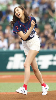 乃木坂・新内眞衣、短パン&ユニで始球式 ノーバンならず「何が起こっているか…」