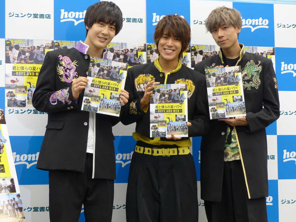 男性グループ「BOYS AND MEN」の平松賢人(23)、土田拓海(27)、吉原雅斗(24)が23日、初の写真集の発売イベントを都内で行った。