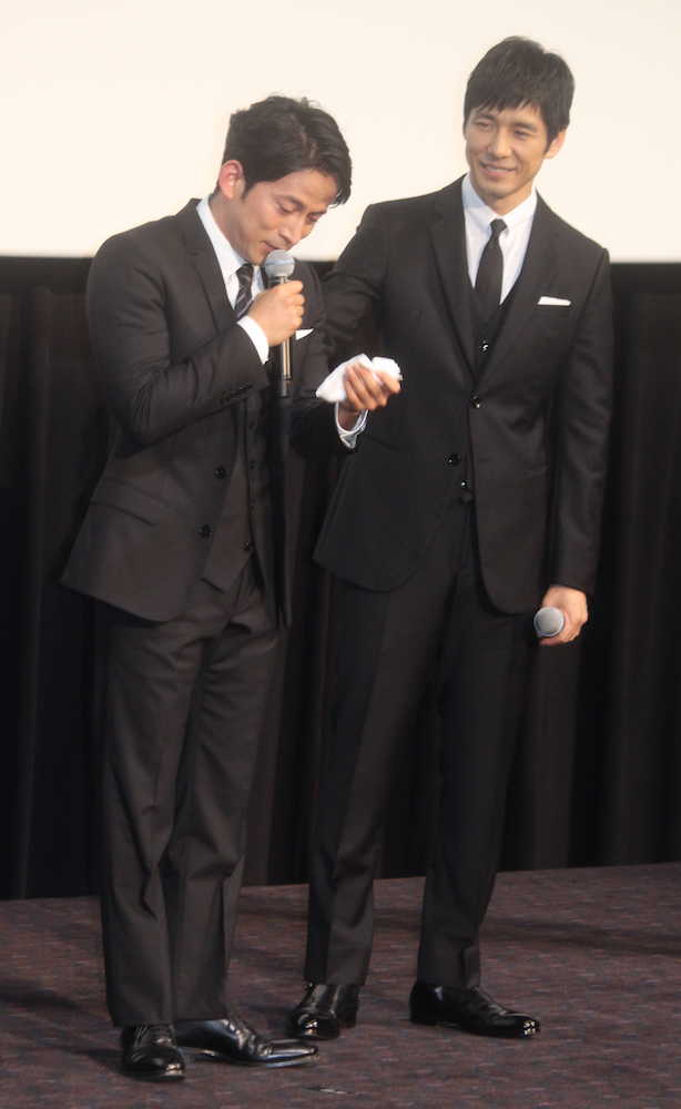 映画「散り椿」初日舞台あいさつで涙をぬぐう岡田准一 Photo by スポニチ 岡田准一 「散り椿」木村監督の涙見てもらい泣き「一緒にやれてよかった… ギャラリーで見る この記事のフォト 2018年09月28日の画像一覧 もっと見る 2018年09月28日の画像をもっと見る