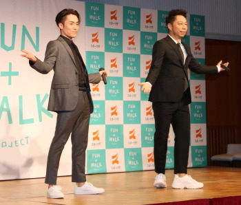 「FUN+WALK」は歩くことで国民の健康増進を図るプロジェクト。USAとTETSUYAは同プロジェクトのアンバサダーに就任し、歩くことの楽しさ、魅力を発信していく。