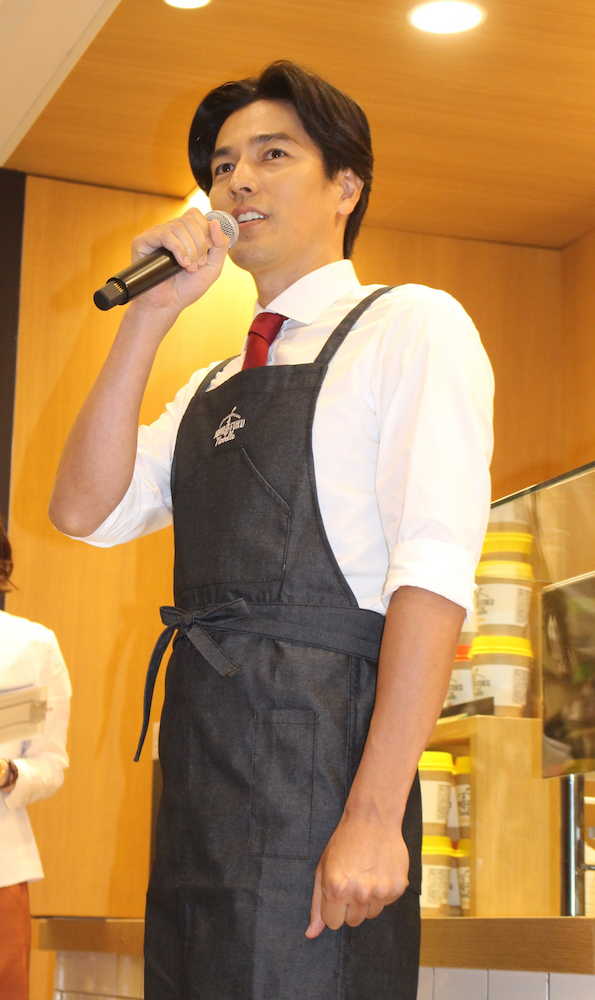 俳優の要潤(37)が3日、阪急うめだ本店地下1階に開店したオーダーメード型の日清カップヌードルショップ「MOMOFUKU NOODLE(モモフクヌードル)」の初代店長として、オープニングイベントに登場した。カップヌードルについて、「若いころから食べてます」と笑顔。作る時には「カップの内側の線ぴったりにお湯を注ぐ」とこだわりを熱弁した。