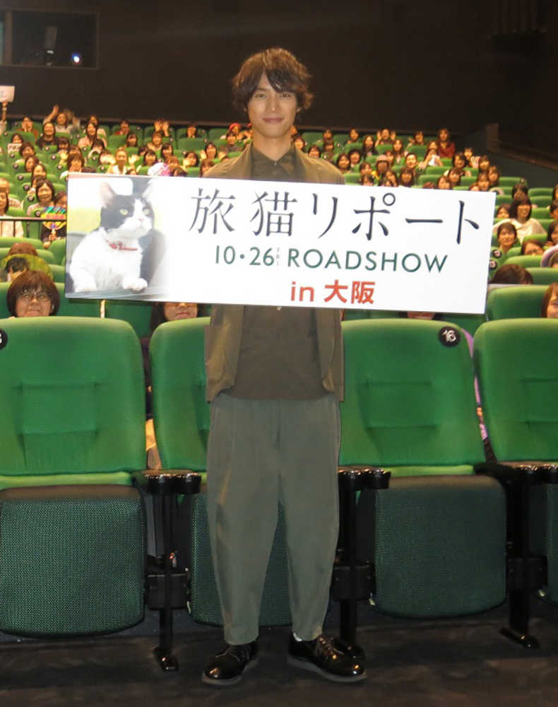 映画「旅猫リポート」(26日全国公開、三木康一郎監督)の特別先行上映会が18日、大阪市内であり、主演の福士蒼汰(25)が舞台あいさつ。「自分の映画を観て泣くことはなかった。初めてです」と大阪のファンにアピールした。
