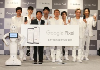 冒頭、ソフトバンク代表取締役副社長執行役員兼COOの榛葉淳氏、グーグル専務執行役員CMOの岩村水樹氏が登壇。新機種は、気になった植物などをそのまま検索できる「Googleレンズ」、ぎゅっと握るだけで「Googleアシスタント」がいつでも起動する「アクティブ・エッジ」など便利な機能を搭載していることを説明した。