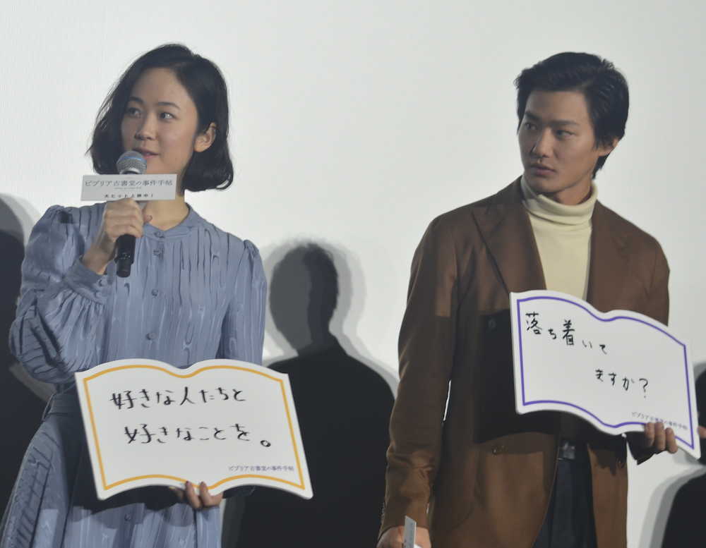 黒木華(28)と野村周平(24)が主演する映画「ビブリア古書堂の事件手帖」(監督三島有紀子)が1日、公開初日を迎え、都内で舞台あいさつが行われた。