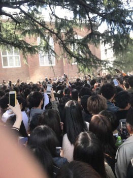 イベントは午後2時15分開始で、同署によると運営する学生団体が午後1時半から300人に整理券を配る予定だった。学生団体は正門付近の広場を配布場所とし、午後1時15分から屋外ステージ前に集まっていた観客を誘導。だが広場には大勢の人が集まっており、たちまち1000人以上に膨れ上がる大混乱。植え込みがなぎ倒されるなどし、あちこちで悲鳴。周辺は一時騒然となった。