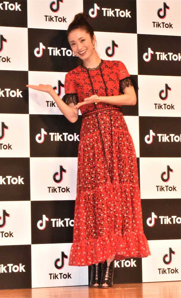 女優の上戸彩(33)が5日、都内でショートムービーアプリ「Tik Tok」の新CM発表会に出席した。