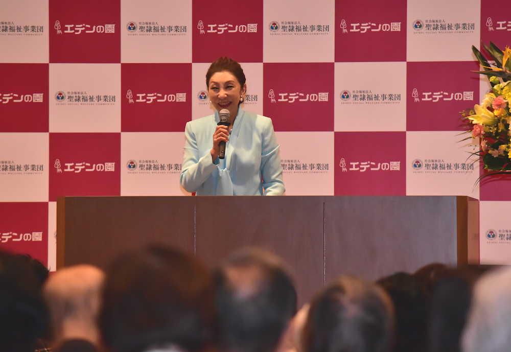この日は水色の衣装で登壇。「鬱があけるまで色のついた服を着られなかった。今は(着られる)幸せを味わっている」と明るい表情を見せた。