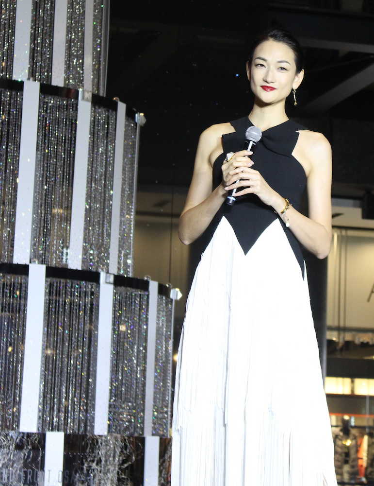 2万5000個のスワロフスキークリスタルで飾られた高さ8メートルのツリーに光がともると、「キラキラしててステキ。ツリー点灯式は初めてで、今年はいいクリスマスになりそう」と笑顔。ピンク、ゴール、ホワイトなど次々と色を変える光と音のライティングショーでは、「天から光が下りてきてツリー全体に入るのがすごく美しい。音響効果もあり、こみ上げるものがありました」と感激した。