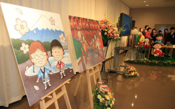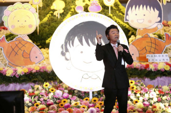 桑田が背にした祭壇は、さくらさんの故郷静岡のシンボル富士山を、本人が好きだったダリアやトルコキキョウなど3万本で再現。遺影は置かれず、生前描いた自画像が飾られた。まる子やたまちゃん、コジコジら作品に登場するキャラクターのボードもズラリ。人を楽しませるのが大好きだったさくらさんの人柄さながらに、会場はにぎやかな空気であふれた。