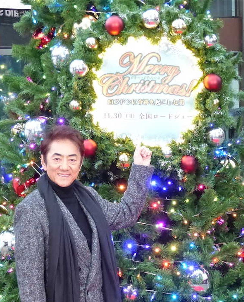 クリスマスを題材にした米映画「メリー・クリスマス!〜ロンドンに奇跡を起こした男〜」(30日公開)でキーマンの老人役の声優を担当した縁で企画された。ボタンを押してツリーを点灯させると「最高ですね。さっそくみんなで何か食べに行きたい」と、一足早いクリスマスパーティーに今にも繰り出しそうな様子だった。