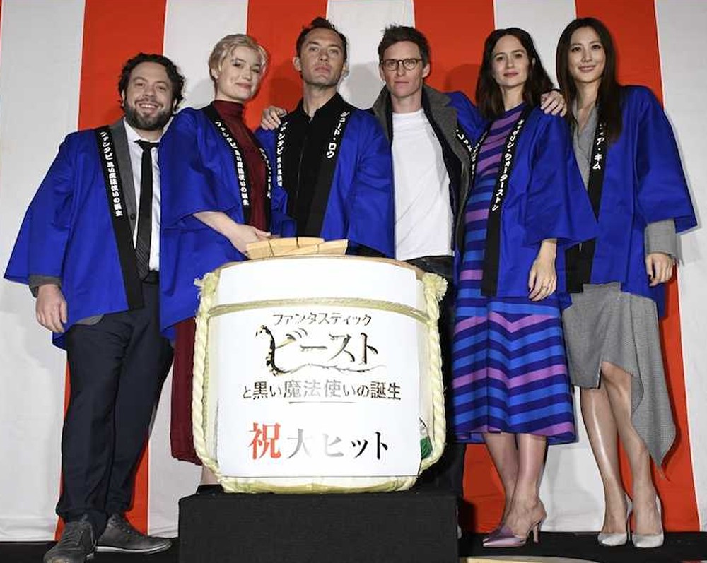 英俳優エディ・レッドメイン(36)、ジュード・ロウ(45)らが23日、都内で映画「ファンタスティック・ビーストと黒い魔法使いの誕生」の初日舞台あいさつを行った。