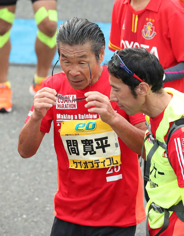 大阪マラソン3年連続挑戦の間寛平(69)は4時間25分58秒でゴール。「大阪を盛り上げる。大阪は面白いんやでと。25年の万博まで、べべ(最後方)から走ります」と76歳になる大阪万博開催の2025年まで、走り続けることを宣言した。