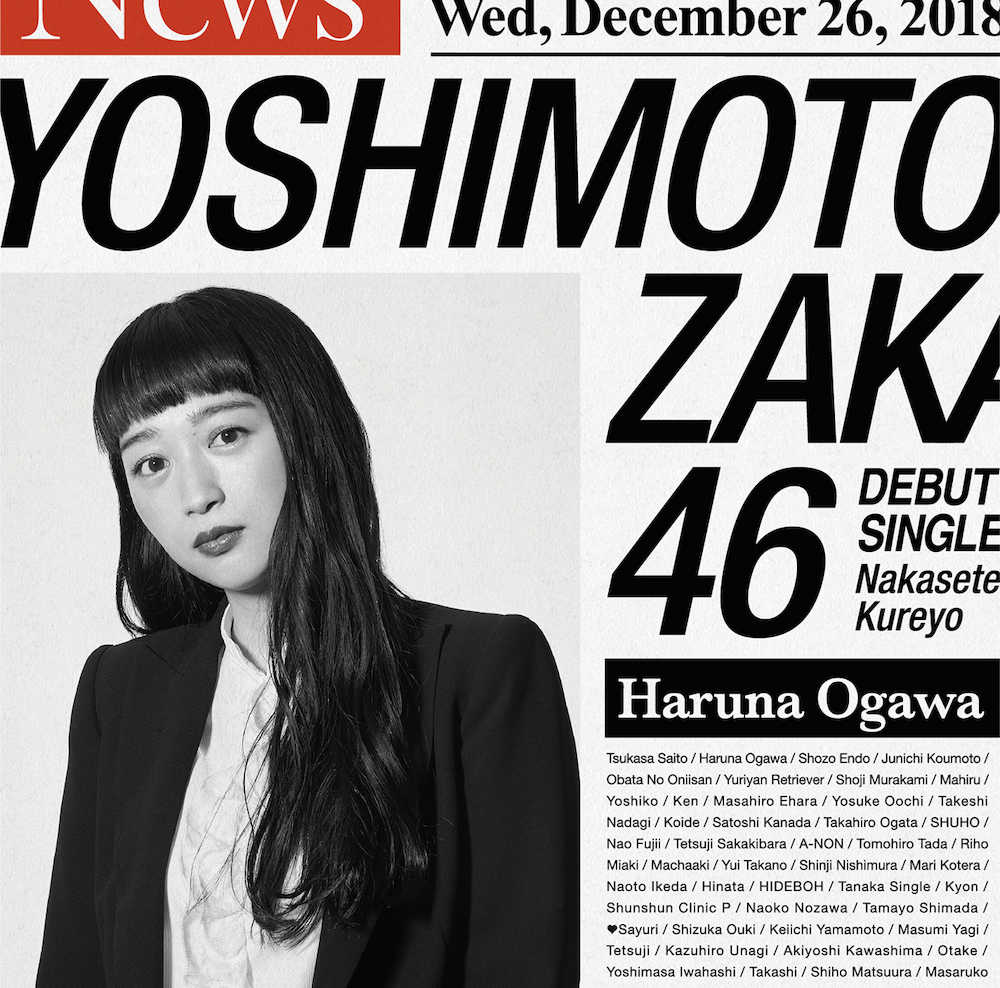 世界記録となる46種類のジャケットで発売される吉本坂46「泣かせてくれよ」のガンバレルーヤ・よしこバージョン Photo by 提供写真 「吉本坂46」デビュー曲でジャケット46パターン!“世界一スタート”や〜 ギャラリーで見る この記事のフォト 2018年11月29日の画像一覧 もっと見る 2018年11月29日の画像をもっと見る