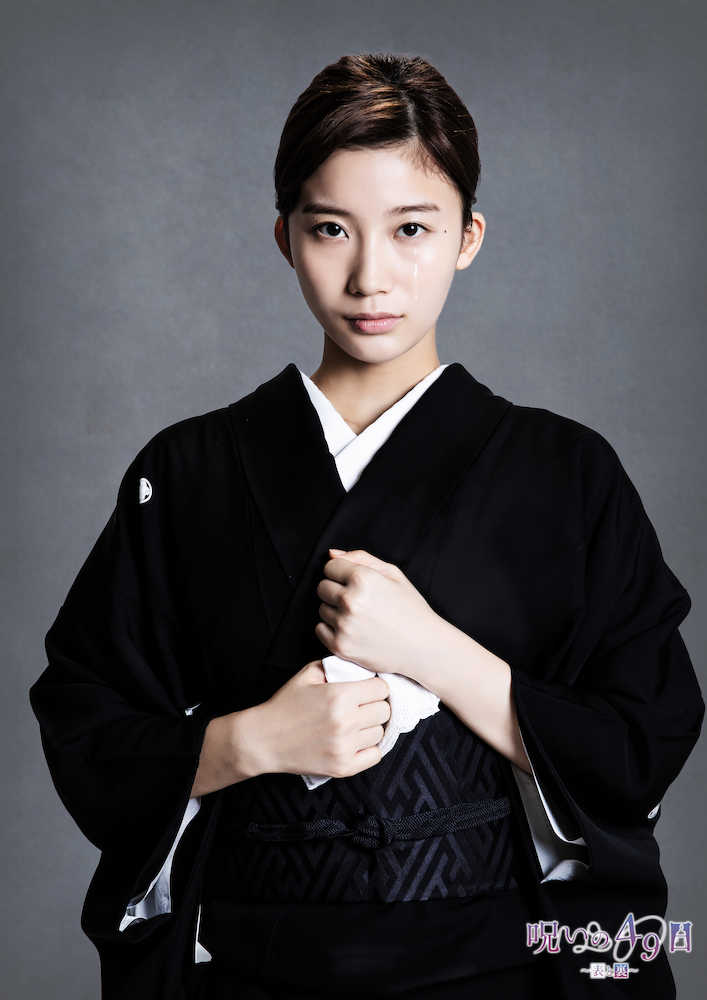 舞台「呪いの49日」で喪服姿を披露する小倉優香