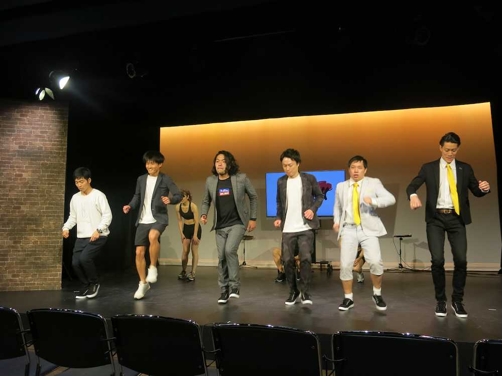 マッスルミュージカルは歌や芝居で物語が進むのではなく「筋肉で音楽を奏でる」という作品。演出家の中村龍史氏(67)が作、演出、振り付けを担当する。この日は31人のパフォーマーがアースタップ(地面を踏みならす)、ボディスラップ(リズミカルに体の一部を叩く)、跳び箱などミュージカルの一部を披露。M―1出場3組でパフォーマンスバトルを繰り広げた。