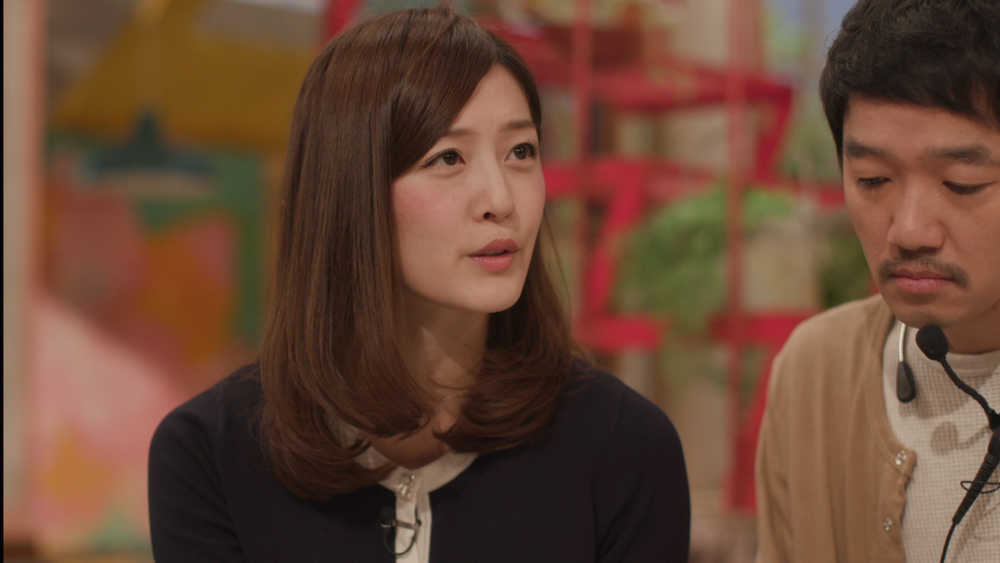読売テレビ「オトナの恋愛塾―マジメ男 信彦の疑問―」にテレビアナウンサー役で出演する中村秀香アナウンサー(左)