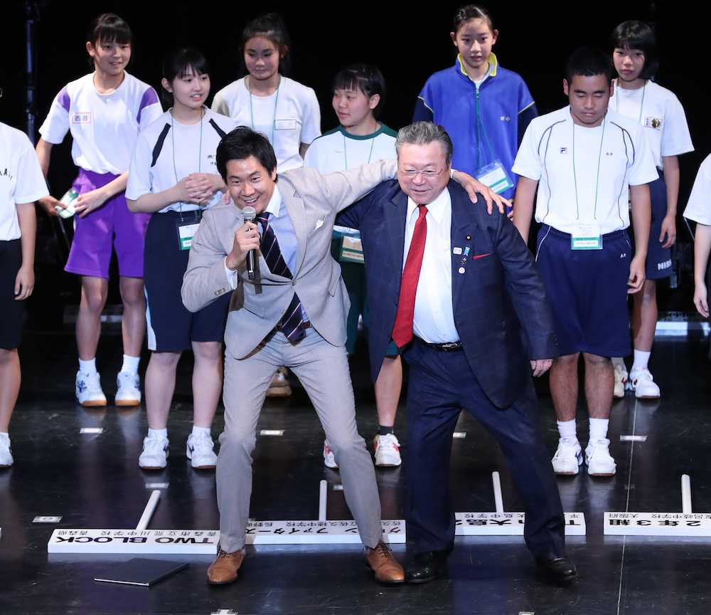 途中で司会のTBS石井大裕アナウンサーに「大臣も踊りましょう!」と言われ、準備運動に参加。ジャンプするなどして額に汗をかき「一生懸命やりましたから」と話した。