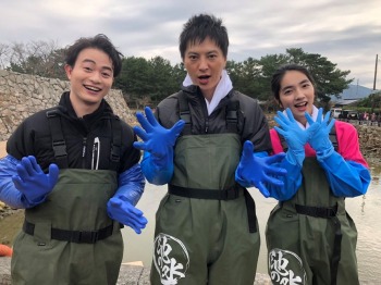 萩城には俳優の塚本高史(36)、森永悠希(22)、女優の仁村紗和(24)が急行。1604年の築城以来1度も水を抜いた記録がないお堀の水を抜く。400年間溜まり続けたヘドロの深さはなんと1メートル。塚本ら3人は大苦戦しながらも生物捕獲に挑戦し、外来種を次々と捕まえる。