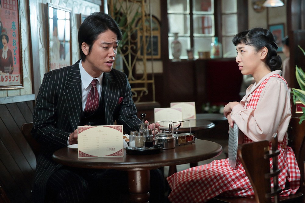 連続テレビ小説「まんぷく」第83話。喫茶店で萬平(長谷川博己)のことを話し合う世良(桐谷健太)と福子(安藤サクラ)(C)NHK