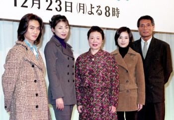 96年11月、TBSドラマ「東京卒業」の会見に臨んだ市原悦子さん(中央)