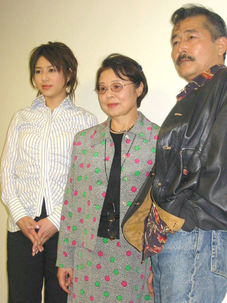 03年2月、NHKドラマ「風子のラーメン」の会見に臨んだ市原悦子さん(中央)