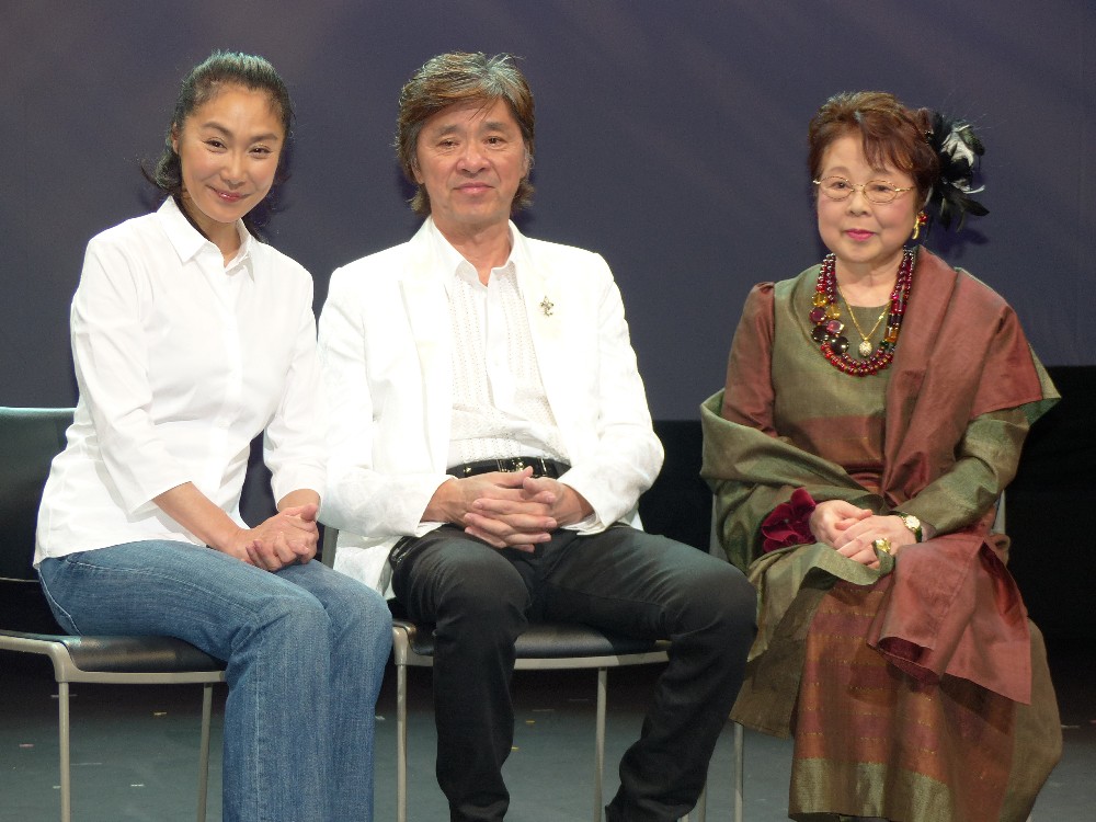 15年12月、朗読劇「キミに贈る物語」に浅野温子(左端)、西城秀樹さん(中央)とともに出演した市原悦子さん