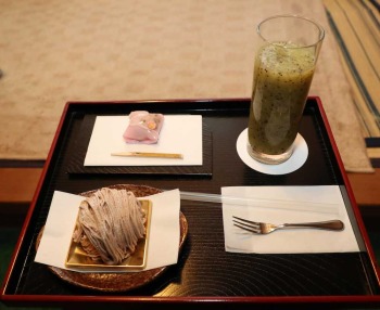 久保王将はチョコレートムースとアイスコーヒー。渡辺棋王は前日に続くモンブランに、午前中と同じフレッシュキウイジュースを注文した。ほか両対局者には和菓子も提供された。対局はいよいよ終盤戦にさしかかろうとしている。