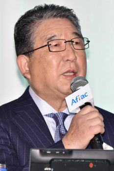 アフラック新商品発表会に出席したリリー・フランキー(撮影・風間 直人)