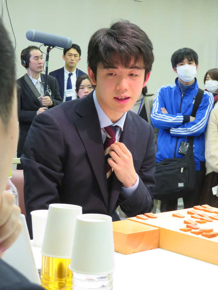 ただ、師匠・杉本昌隆七段(50)が前日にサービストークで「連覇確率3〜4割」と語ったことに関し、自分では何割と思うか?を問われると苦笑い。「対局の当事者なので、確率は意味のないことかと…」とかわして難を逃れていた。
