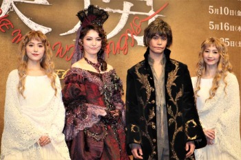 衛藤は見世物として口を裂かれ醜悪な笑みを貼り付けられた少年・グウィンプレン(子役〜浦井健治=37)に拾われ、やがて互いに惹かれ合うようになる盲目の娘・デアを演じる。デア役は夢咲ねね(34)とダブルキャストで、初顔合わせの日に偶然「ねねさんとお揃いの帽子をかぶっていたことに、運命を感じました」と告白。かなり個性的な4色の帽子だったため、2人は顔を見合わせて、その偶然を喜んだという。