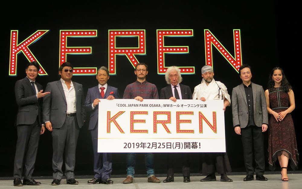 「KEREN」は日本独自の世界観をテーマにマルチメディアが融合した、大阪から世界に発信するオリジナルレビュー。殺陣、歌舞伎、日本舞踊、ダンス、タップなど伝統アナログ舞台とデジタルアートが一体となり、古今のNIPPONの情景を絵巻物のように表現する。