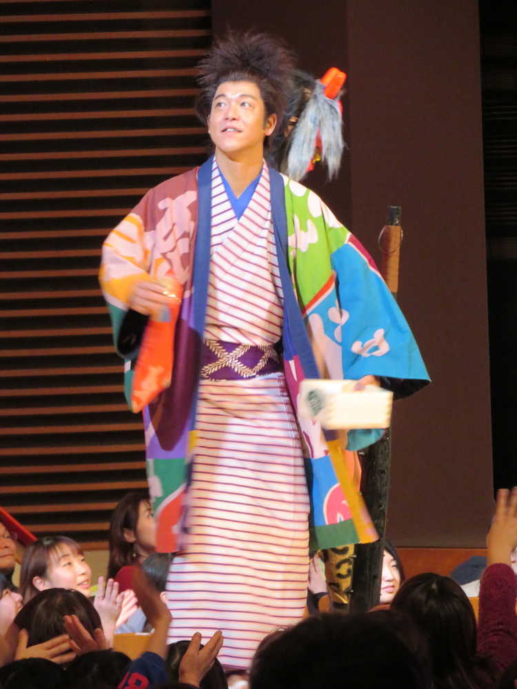大阪松竹座の舞台から豆まきをする駿河太郎