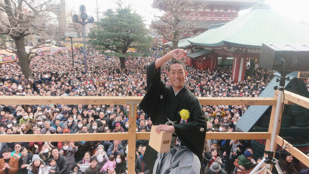 「いだてん」中村勘九郎、中村屋ゆかりの浅草寺で豆まき 「金栗さん〜!」の掛け声も