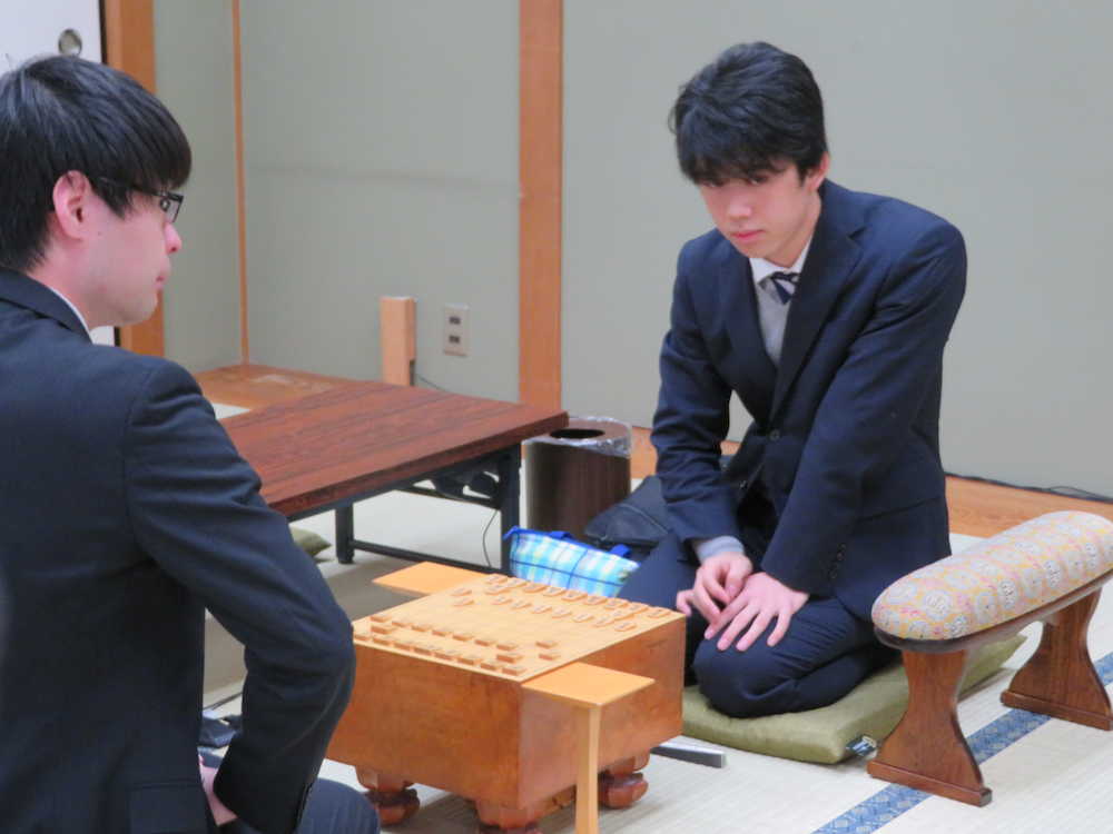 順位戦は名人戦の予選に当たり、C級1組は今期、39人が所属。10回戦まで戦い、2つの昇級枠を争う。ここまで藤井、杉本ともに8戦全勝。藤井は7勝1敗で追う近藤誠也五段(22)と、杉本も7勝1敗の船江恒平六段(31)と、昇級をかけた直接対決に挑んでいる。