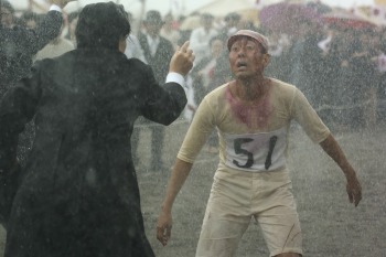 脱落者が13人を数え、東京高等師範学校教授・永井道明(杉本哲太)が「責任問題ですよ。これは“羽田の悲劇”ですよ!」と嘉納治五郎(役所)に詰め寄った時、治五郎は双眼鏡をのぞき込み「来た!韋駄天だ!」。四三がトップで羽田運動場に帰ってきたのだ。どしゃ降りの雨の中、帽子の赤色が落ち、顔は“血まみれ”のよう。このシーンは第1話のラスト3分30分にも登場し、演出は「まるで歌舞伎の隈取」と話題を呼んだ。