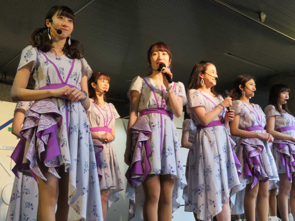 大阪市内でミニライブ兼握手会を開いた「カレッジ・コスモス」の(前列左から2人目)山木梨沙ら