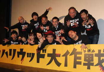 2018年の邦画最大の話題作となった「カメラを止めるな!」の初のスピンオフ作品となる「カメラを止めるな!スピンオフ『ハリウッド大作戦!』」のプレミアム試写会が28日、都内の映画館で行われ、本作で製作総指揮・脚本を務めた上田慎一郎氏(34)、今作の中泉裕矢監督(39)に加え、真魚(27)、濱津隆之(37)らキャスト陣が登壇した。