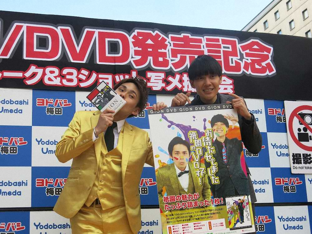 お笑いコンビ「祇園」が結成10周年記念しのDVD「お待たせしました 祇園のDVDです!」を13日、発売。大阪市内でイベントに臨んだ。