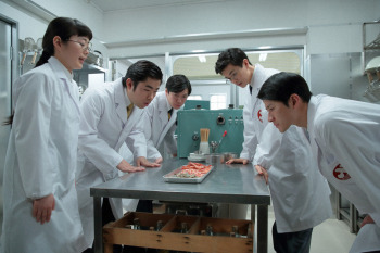 「まんぷくヌードル」に入れる具材を作るため、萬平(長谷川博己)はフリーズドライ製法に注目する。色々な食材を試して、ネギとスクランブルエッグを採用する。さらに100円の値段にふさわしい高級感のある食材を入れたいと、神部(瀬戸康史)の提案でエビをフリーズドライ加工することに。そして福子(安藤)と萬平は、ミンチに野菜などの食材を練り込み、味付けした加工肉を作ろうと考えたのだが…。