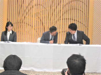 AKS運営責任者の松村匠取締役、NGT劇場支配人の早川麻依子氏らが出席。松村氏は、前日21日に公式サイトで発表した調査報告書の内容を説明し「山口ともコミュニケーションを取り、フォローに努めていきたい」と事態好転への思いを語った。