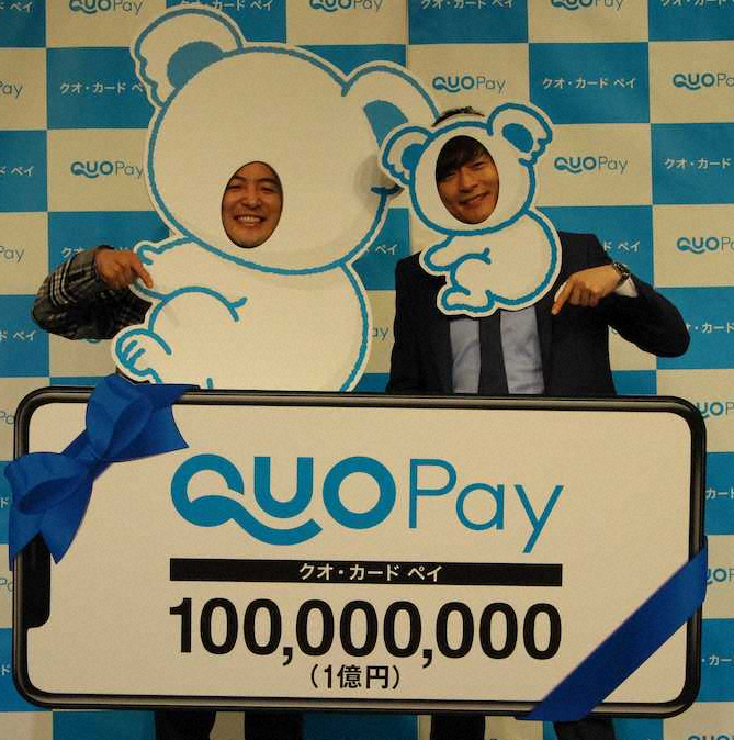 また今回のキャンペーンで当たる「1億円」が会場に用意され、2人でアンベール。山積みの札束を期待していた2人の前に現れたのはスマホ画面に「1億円」と記されたQUOカードPay。苦笑いしながらも水田は「1億円当たったら家を買いたい!今までQUOカードで家を買った人はいないでしょう」と“野望”を語った。