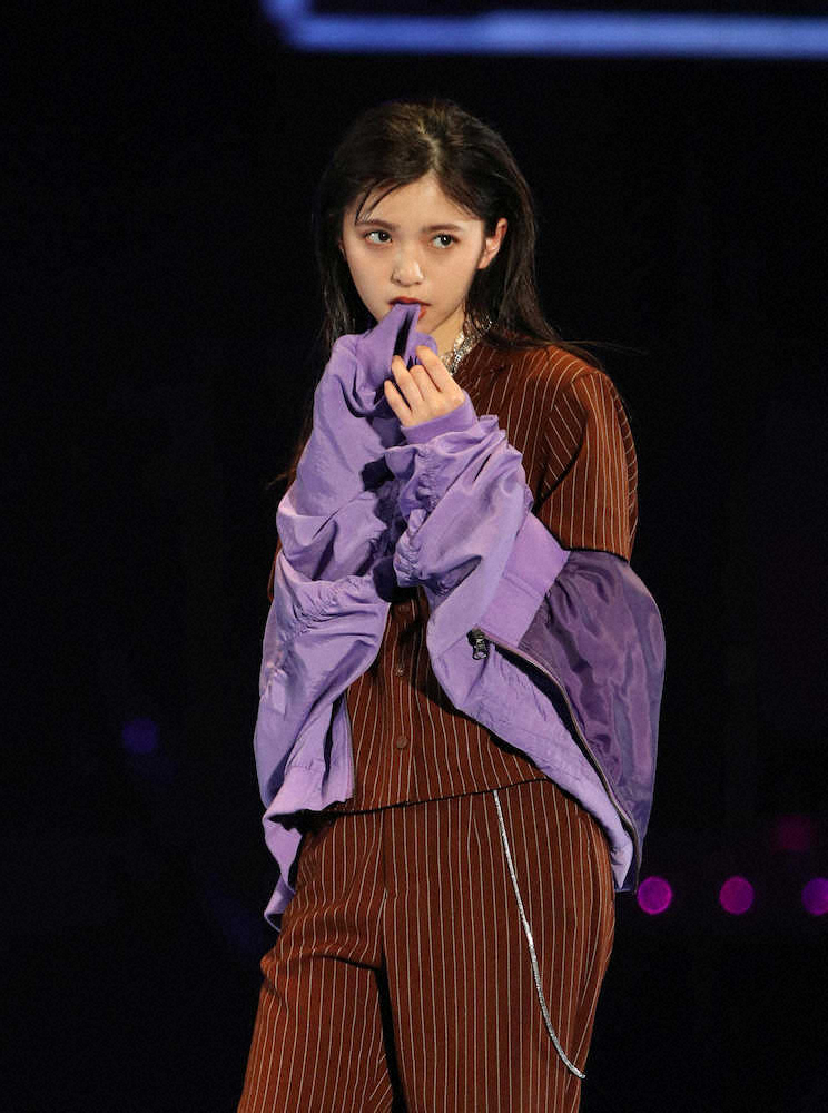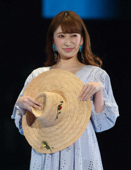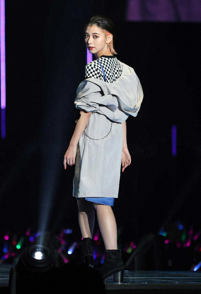 <東京ガールズコレクション>麦わら帽子を手に、ポーズを決めるNMB48吉田朱里(撮影・木村 揚輔)