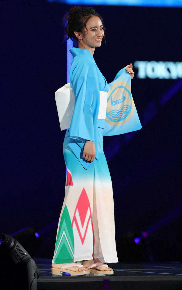 <東京ガールズコレクション>笑顔でポーズを決める吉川愛(撮影・木村 揚輔)