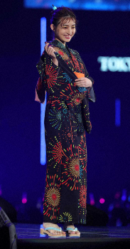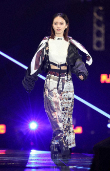 <東京ガールズコレクション>ランウェーを歩き、華麗な蹴りを披露する武尊(撮影・木村 揚輔)