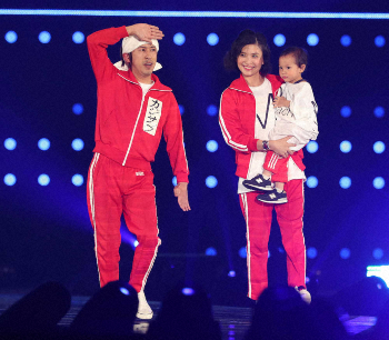 <東京ガールズコレクション>ランウェーを進む(左から)カジサック、ヨメサック、せんちゃん(撮影・木村 揚輔)