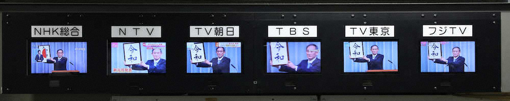 新元号「令和」の発表を一斉に報じるテレビ各局