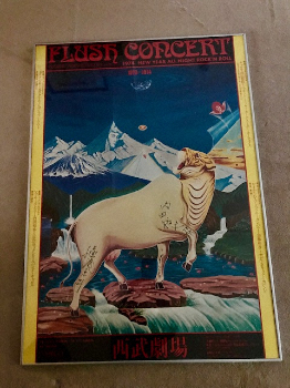 祭壇は裕也さんが主催する年越しライブ「ニュー・イヤーズ・ワールド・ロック・フェスティバル」の第1回公演(1973~74年)のために美術家の横尾忠則氏(82)が制作したポスターを草花で再現。虎の頭に豚の胴体、エベレストや富士山、ピラミッドなどが描かれた斬新な図案だ。同ポスターは昨年9月に死去した裕也さんの妻で女優の樹木希林さん(享年75)が寝室の壁に飾るなど大切に保管していた。