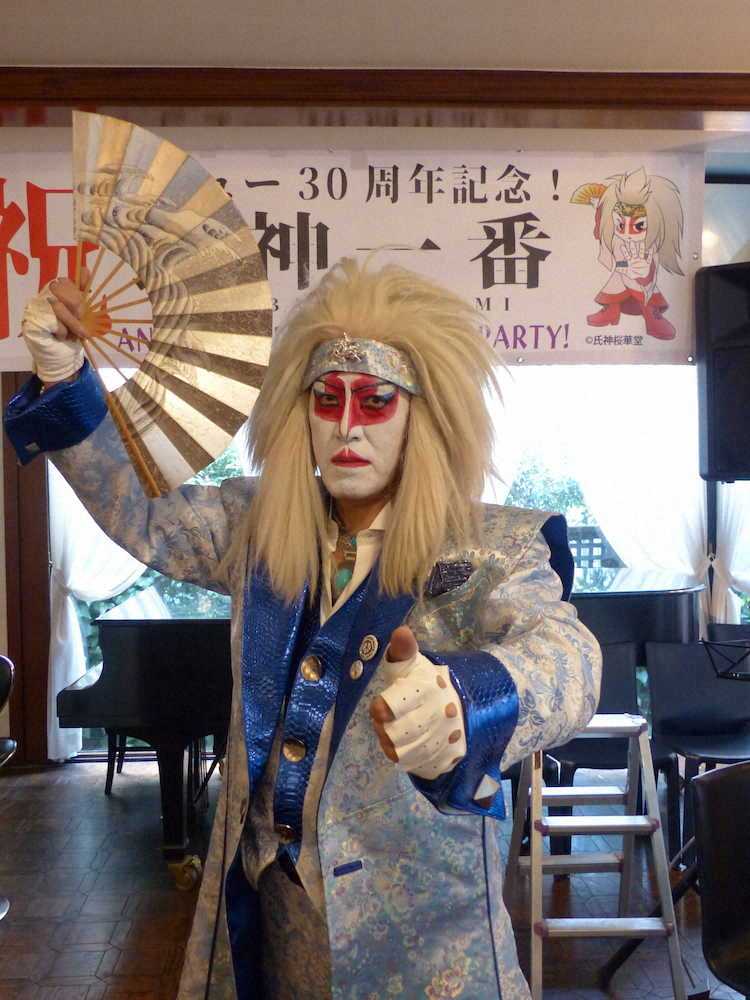 カブキロックスの氏神一番(60)が6日、都内でメジャーデビュー30周年を記念したパーティーを開いた。代表曲「お江戸―O・EDO―」などを歌唱。山本リンダもお祝いに駆けつけた。