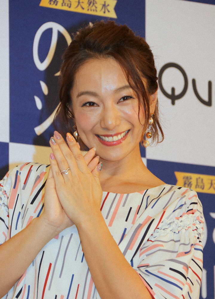「霧島天然水のむシリカ発表会」に登壇した三船美佳。左手薬指には指輪がキラリ