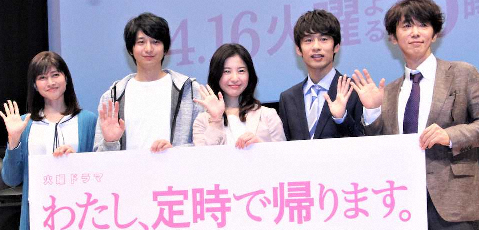 働き方をテーマにした作品で、吉高は定時に必ず帰るOL役。ユースケ・サンタマリア(48)がブラック上司役で「6話までにこの中の誰かが殺害されます」とうそをついて作品をアピール。吉高は「変な記事になっちゃうから!」と大慌てで、ブラック上司の洗礼を受けていた。